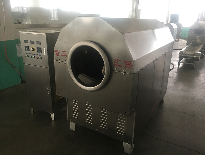 电磁加热智能控温的不锈钢滚筒全自动炒货机 该机适用领域广 炒制干果类 坚果类 杂粮类 草药类 化工类等产品已非常成熟 智工汇保多功能电磁炒货机自动化程度高 16年专业炒货机厂家 欢迎来厂实地考察